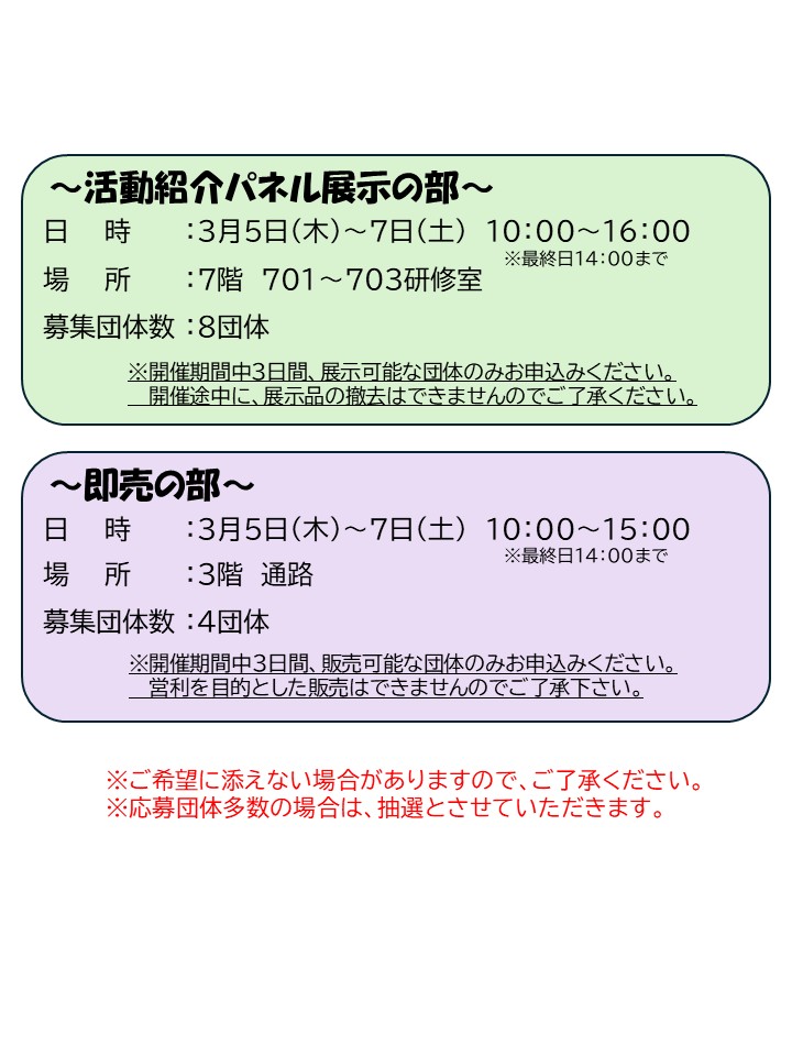 それに伴い、参加団体を募集します。総合福祉センターで日頃から活動している団体の成果を発表してみませんか?