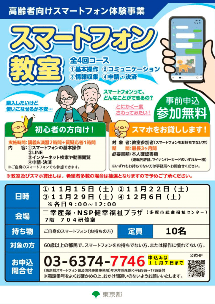 ※お申し込み・問合せは『東京都スマートフォン普及啓発事業事務局(03ー6374ー7746)』まで
