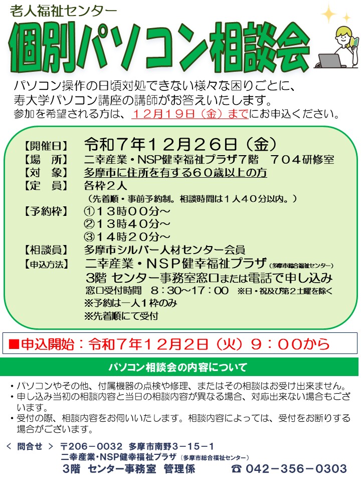 二幸産業・NSP健幸福祉プラザ(多摩市総合福祉センター)3F センター事務室 管理係